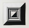 Using a series of three related and repeated three-dimensional elements of squares, triangles and rhombi with equal bases inside a square space with one rectangular bar, Enzo Mari produces a natural phenomena engaging the viewer's participation. The rotation of the square produces nearly infinite combinations as the pieces fall into place.
